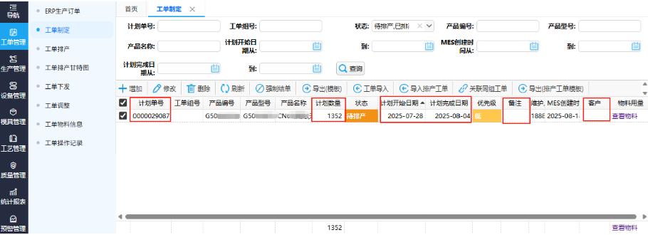 - 功能开启后的工单转化规则:开启该功能后,从 ERP 系统同步至 MES 的所有工单,必须先通过本功能转化为计划单;转化完成后,计划员需进入 “工单制定” 模块,基于转化后的计划单进行后续排产操作,不可跳过转化步骤直接排产。