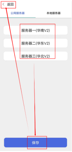 2.根据公司实际使用的服务器,选择相应服务器后,点击“保存”。