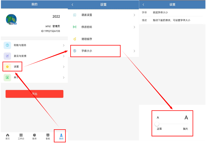 5.登录APP后,如果需要调整字体大小,请到“我的”界面进行修改。